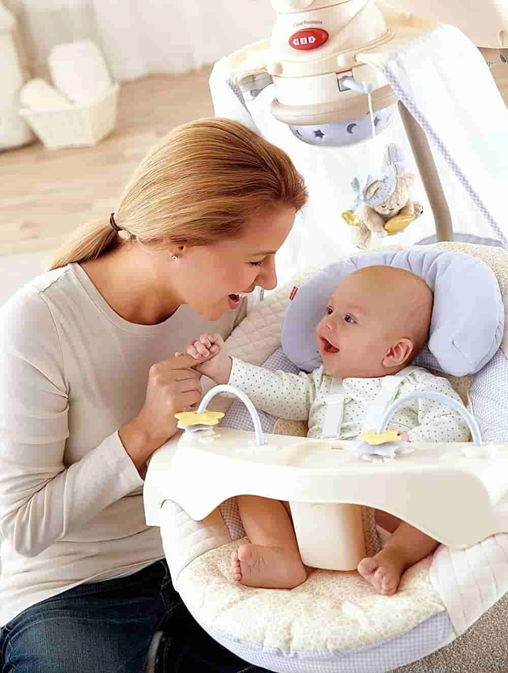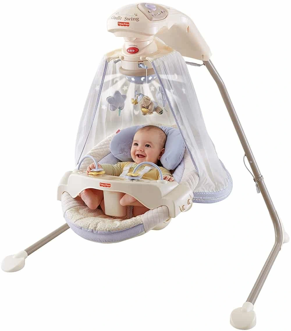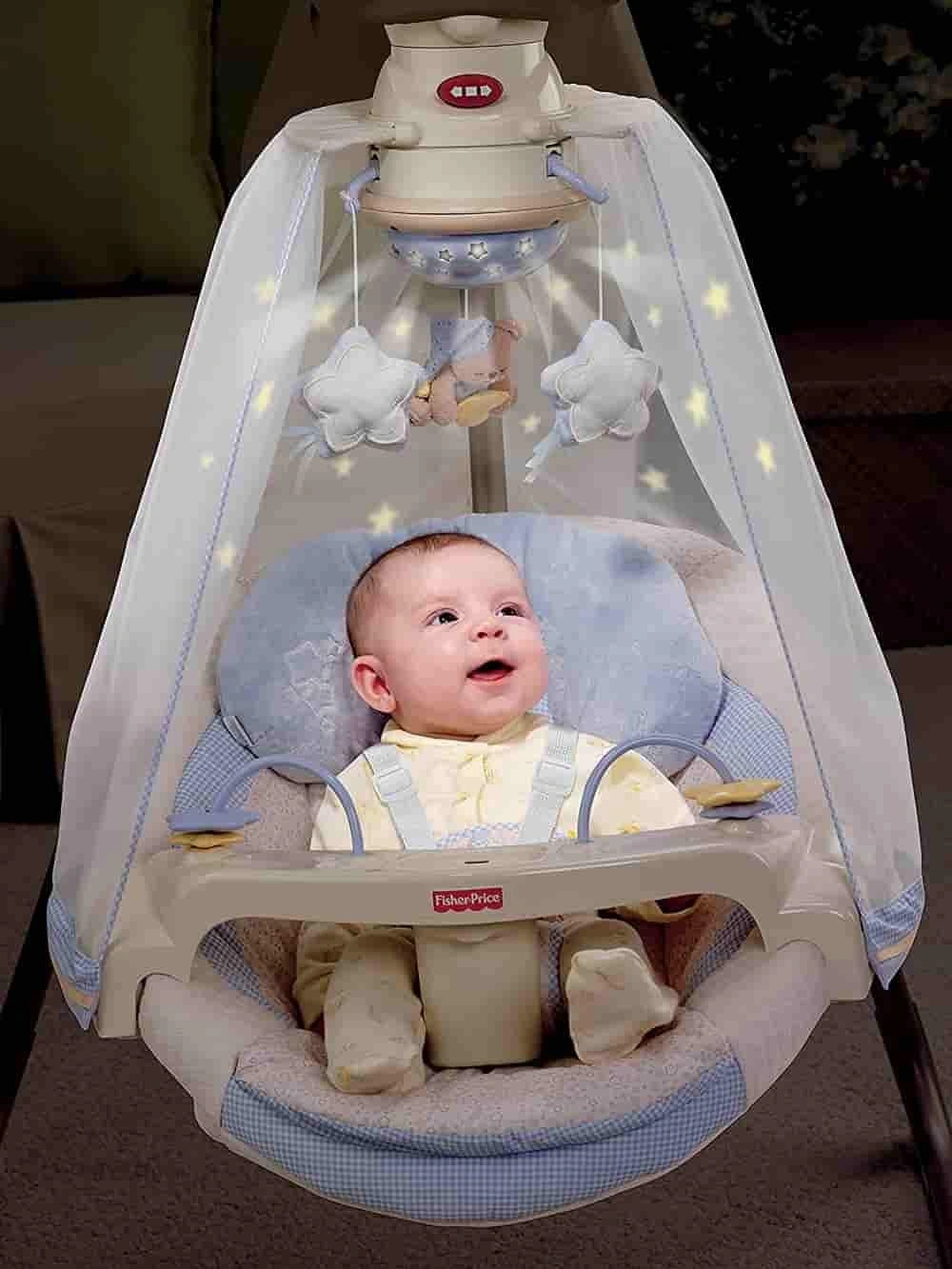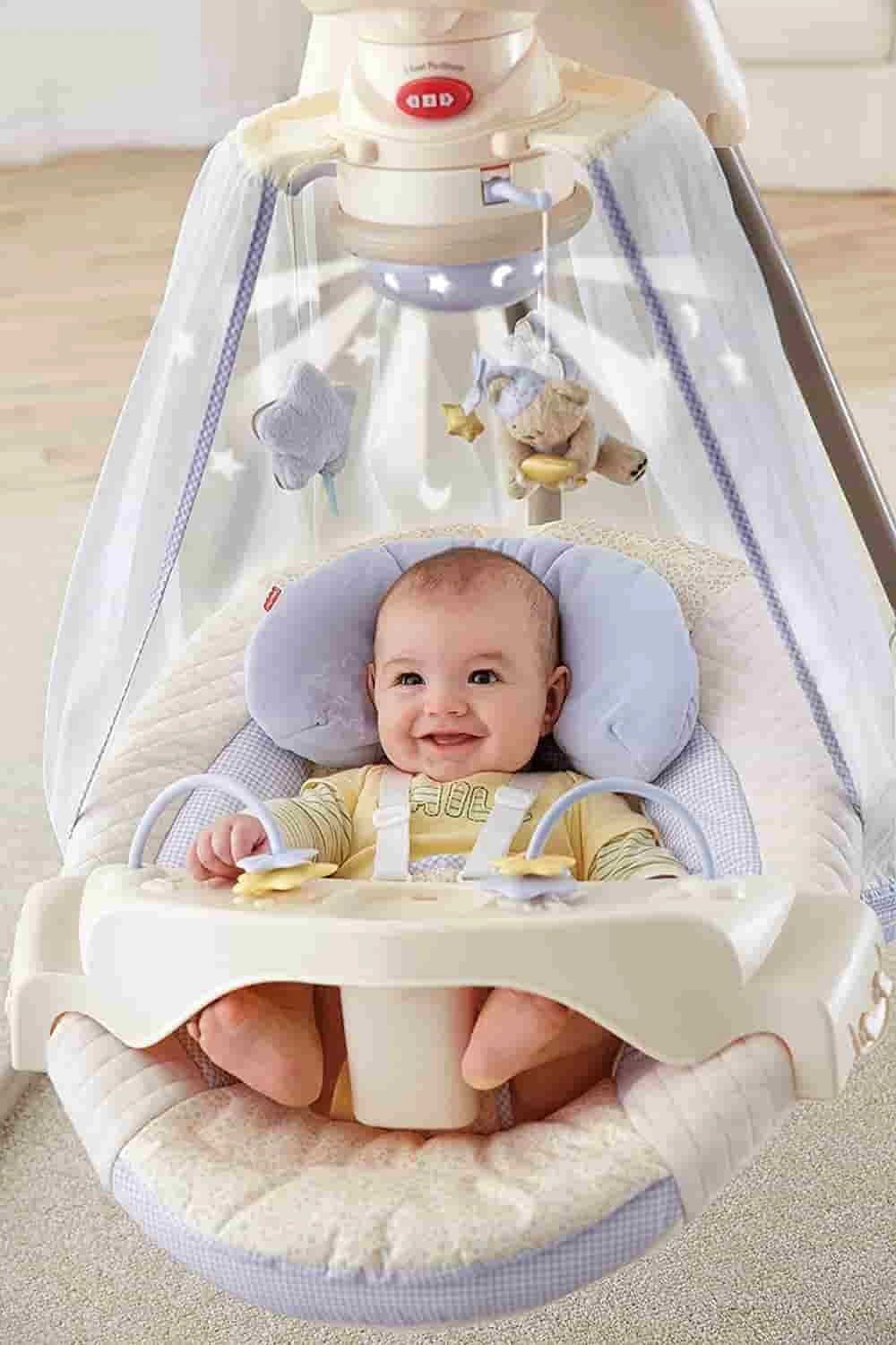 Leagănul electric Lumina stelelor Fisher Price este un leagăn multifuncţional pentru bebeluși, care poate fi utilizat de la naştere. Pe suportul moale şi comod copilul se va simţi în siguranţă, ca în braţele mamei. Deasupra capului bebeluşului atârnă un carusel cu proiector şi jucării colorate. Este dotat cu melodii calmante (16 melodii, sunete ale naturii şi regulator de sunet). Sunetul poate fi deconectat. Proiectează steluţe minunate. Regim de legănare în trei direcţii, înainte-înapoi, dintr-o parte în alta (ca un leagăn clasic). Viteza de legănare se ajustează: 6 viteze. Spătarul se fixează în 2 poziţii. Centura cu 5 puncte de fixare este garanţia siguranței copilului. Dezvoltă percepţia vizuală şi auditivă. Contribuie la dezvoltarea complexă. Este de un real ajutor în casă pentru a-ţi face rost de timp liber. Alimentare de la priză sau de la 4 baterii D (LR20).