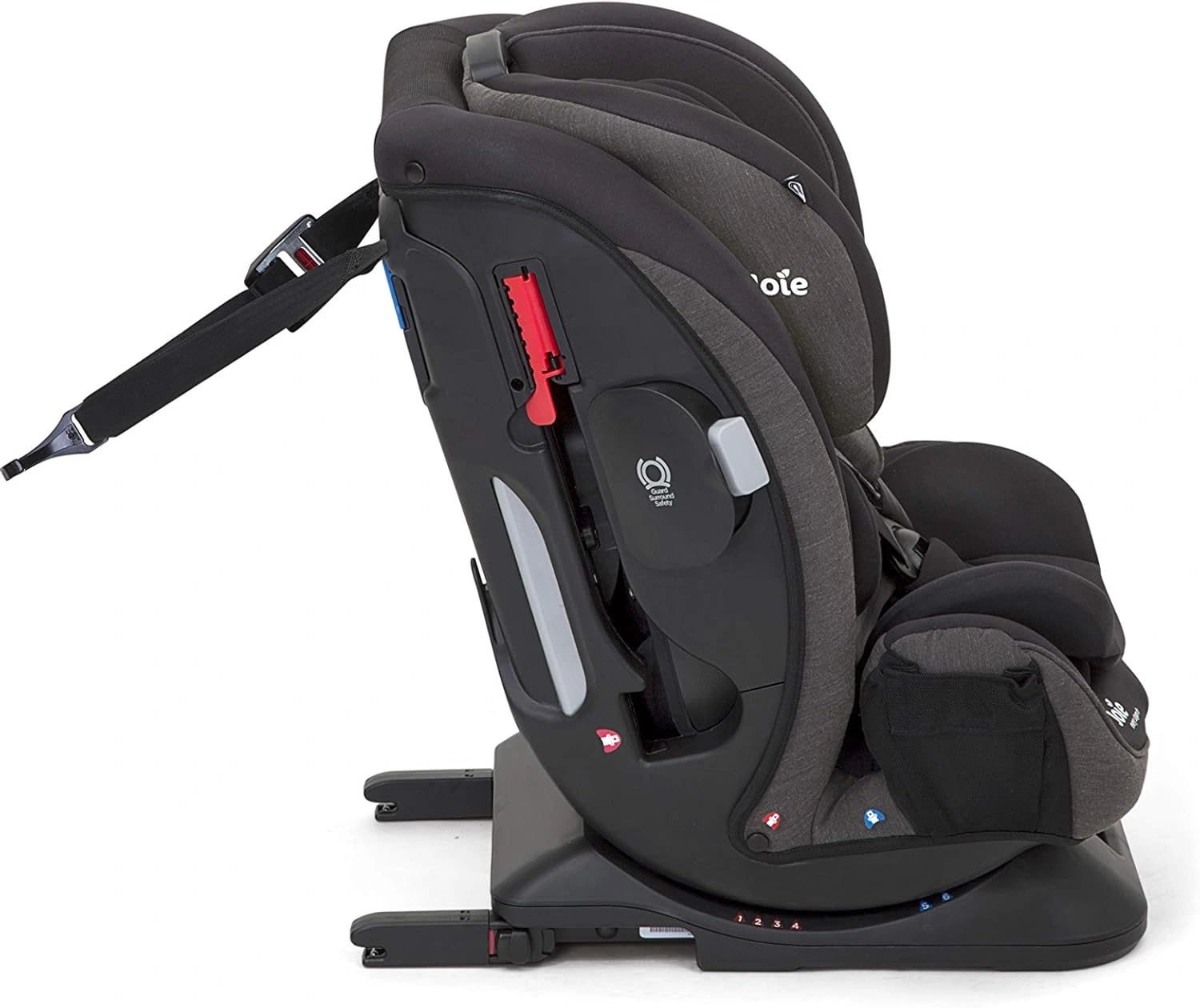 Рамка с замками isofix имеет регулировку по глубине, что позволит подогнать её длину под isofix в любом автомобиле (глубина залегания петель крепежа isofix в разных автомобилях разная). Фиксацию автокресла Joie Every Stage FX можно произвести двумя способами: система isofix или штатными ремнями автомобиля. Оба способа доступны при установке кресла, как по ходу движения, так и против хода. На задней спинке есть дополнительный ремень крепления – Toptether. Правильно установленное детское автокресло – важнейшее условие безопасности вашего ребенка при поездках в автотранспорте.
